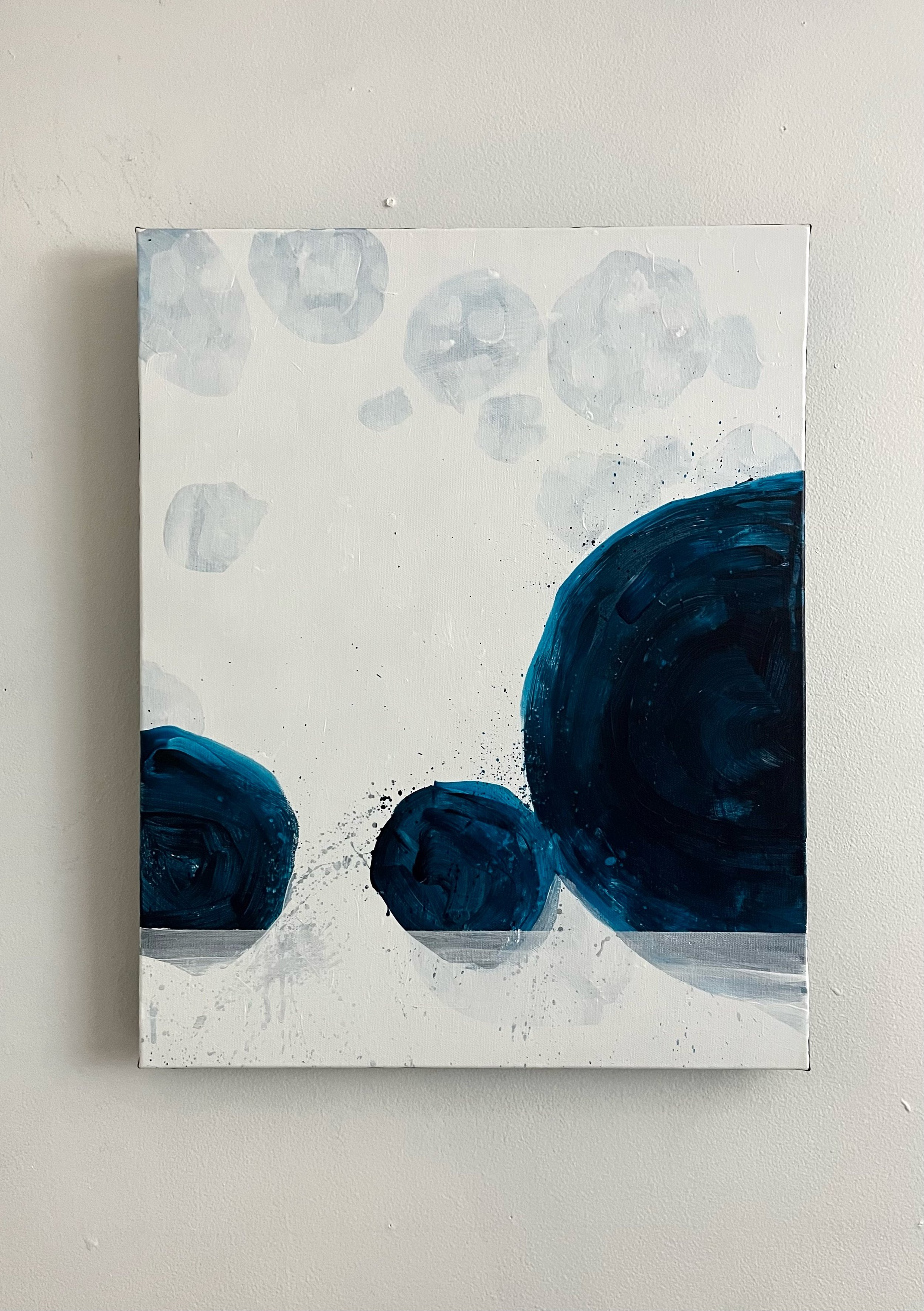 "Blue Retreat". Acrylic on 16" x 20" cotton canvas. (2024)